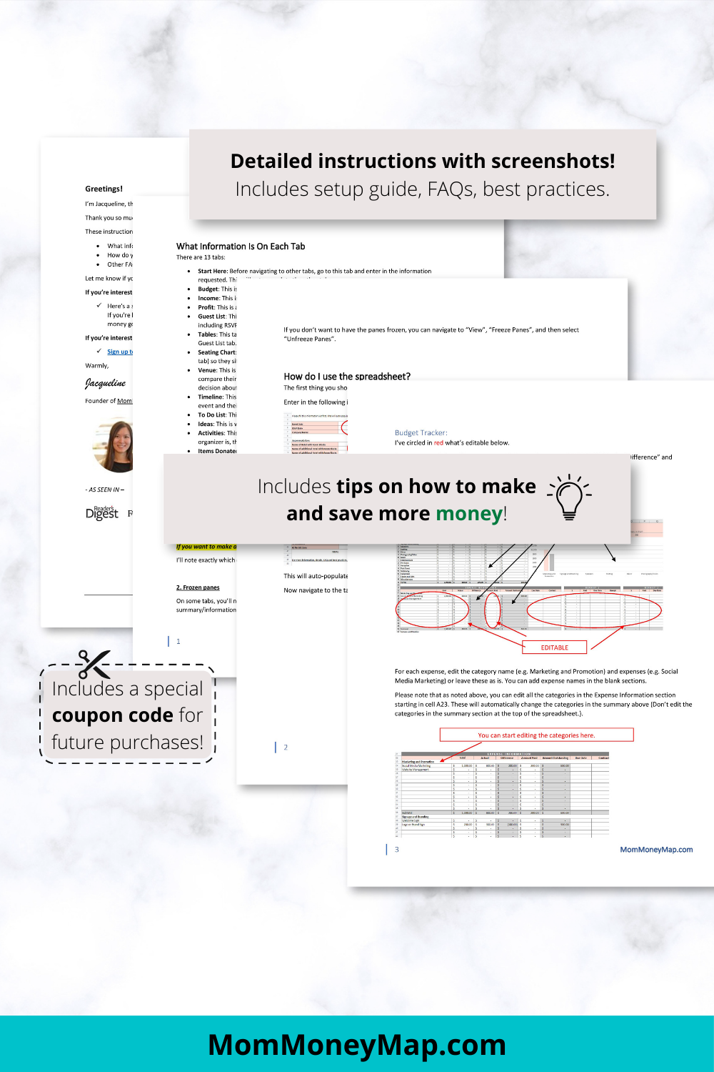 There is also an extensive instructions manual containing what's on each tab, how to use each tab, and additional tips on how to save and make more money.